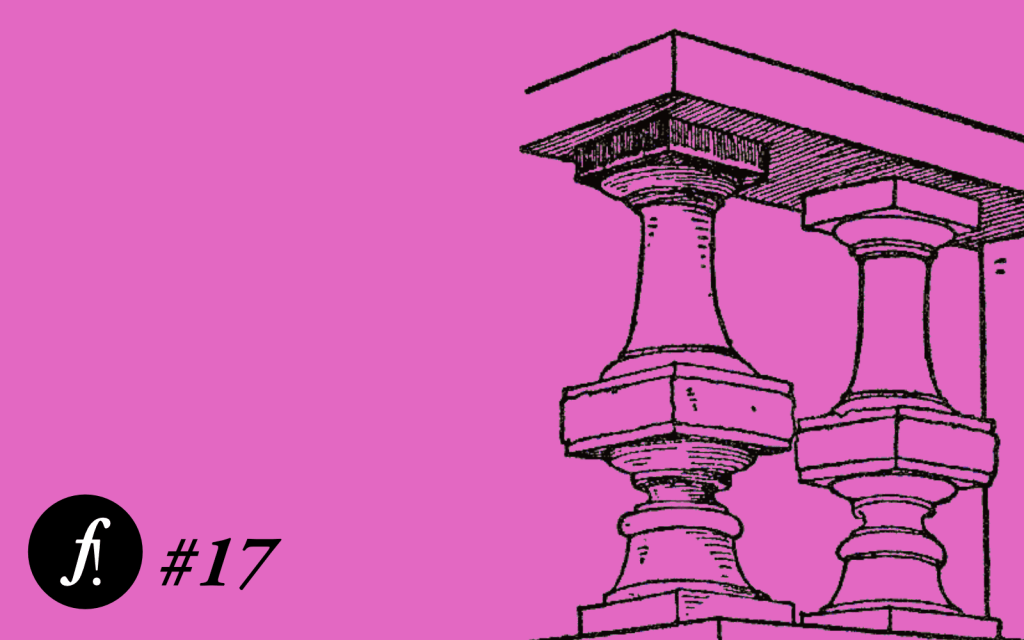 Imagem em fundo rosa com o desenho de um balaústre no lado direito e a inscrição “F! #17” no canto inferior esquerdo.